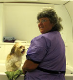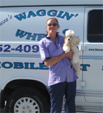 Laurie is a life long entrepreneur. She has been self-employed for decades. She began working in the landscape design field in the 80’s. Since then she has dabbled in many endeavors. Being the dog lover that she is, she finds mobile pet grooming a delight. As a young girl she helped her mother raise St. Bernards. Where ever they were, her mother Bobbye would have to say “Hi” and pet any dogs they would see. Laurie seems to have carried that same trait. She met Theresa, a professional groomer since 1983, and in 1999 Theresa’s Waggin’ Wheels, Inc was born. Laurie is the “dog whisperer”, calming and comforting the dogs all through the grooming process. She uses a Hydro-therapy bathing system that pressurizes the shampoo down to the skin, giving them a massage, at the same time, getting all of the shedding undercoat out. Laurie has always felt that she would work with dogs in one capacity or another. And often chuckles at the fact that her intuition has come true. She truely looks forward to spoiling your furbaby!